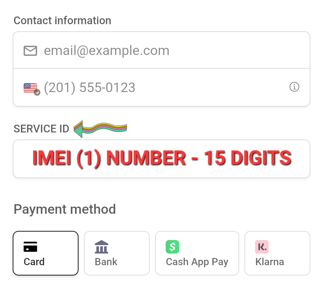 *PLEASE SUBMIT DEVICE IMEI IN THE :SERVICE ID" SECTION WHEN PLACING ORDER WITH PAYMENTY LINK ABOVE SO WE CAN MATCH YOUR DEVICE, YOUR ORDER AND YOU.